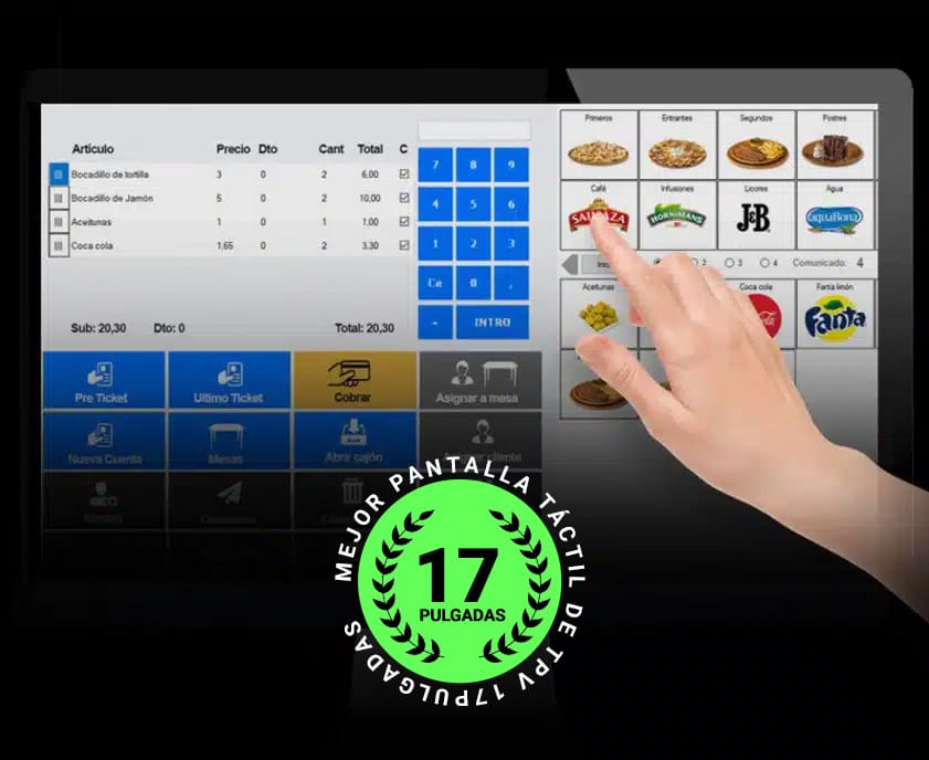 Los tpv que puedes encontrar en internet tienen pantallas de 15 pulgadas e incluso de 11 y 10. Trabajar con una pantalla tán pequeña es realmente incomodo.